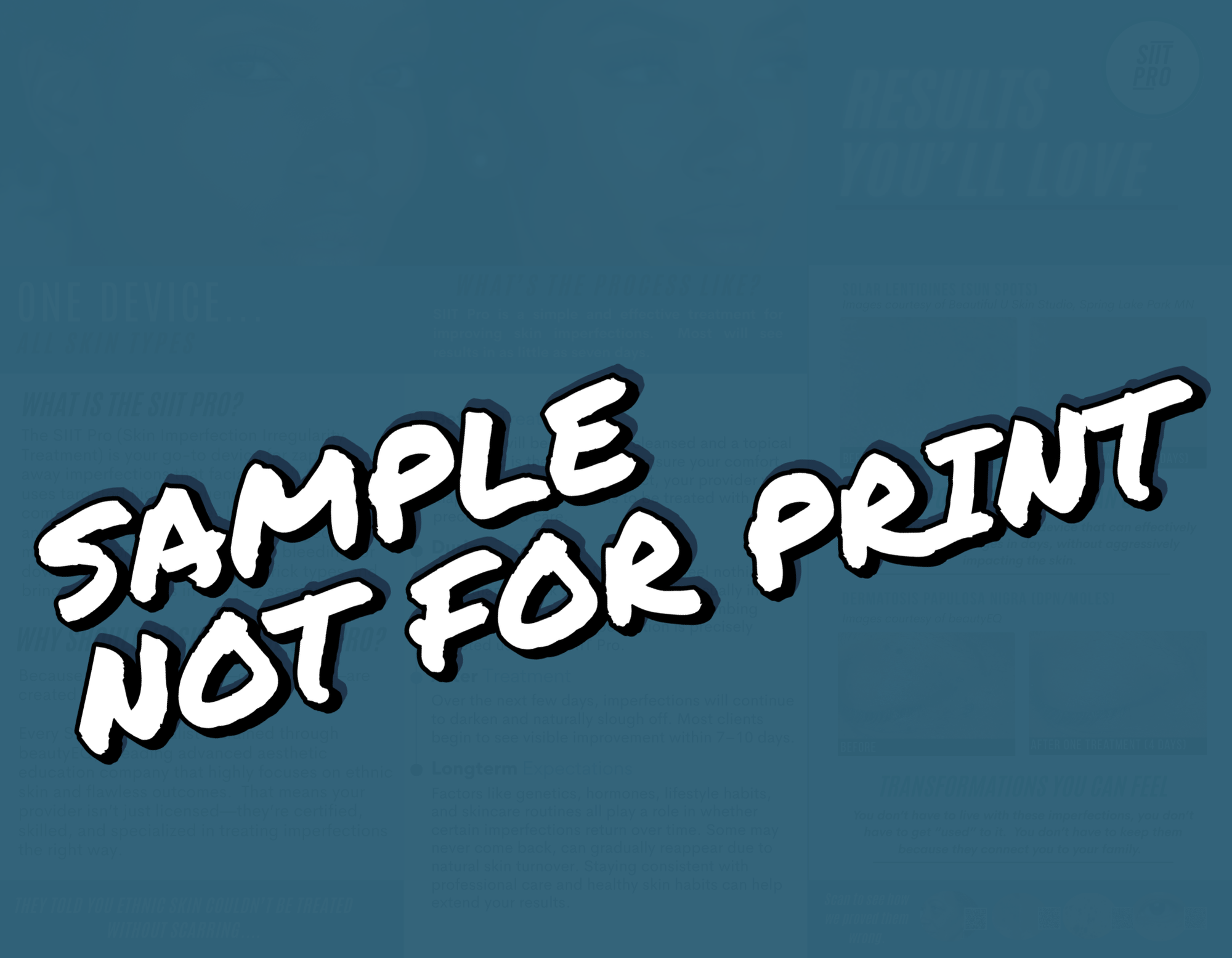 This professionally designed SIIT Pro trifold brochure is the perfect in-office marketing tool to help you educate clients, address their concerns before they ask, and confidently communicate the value of the SIIT Pro treatment. From how it works to why it's different, this brochure answers it all—using bold, clear language that reflects the power behind your results. You will also receive the Canva template link.